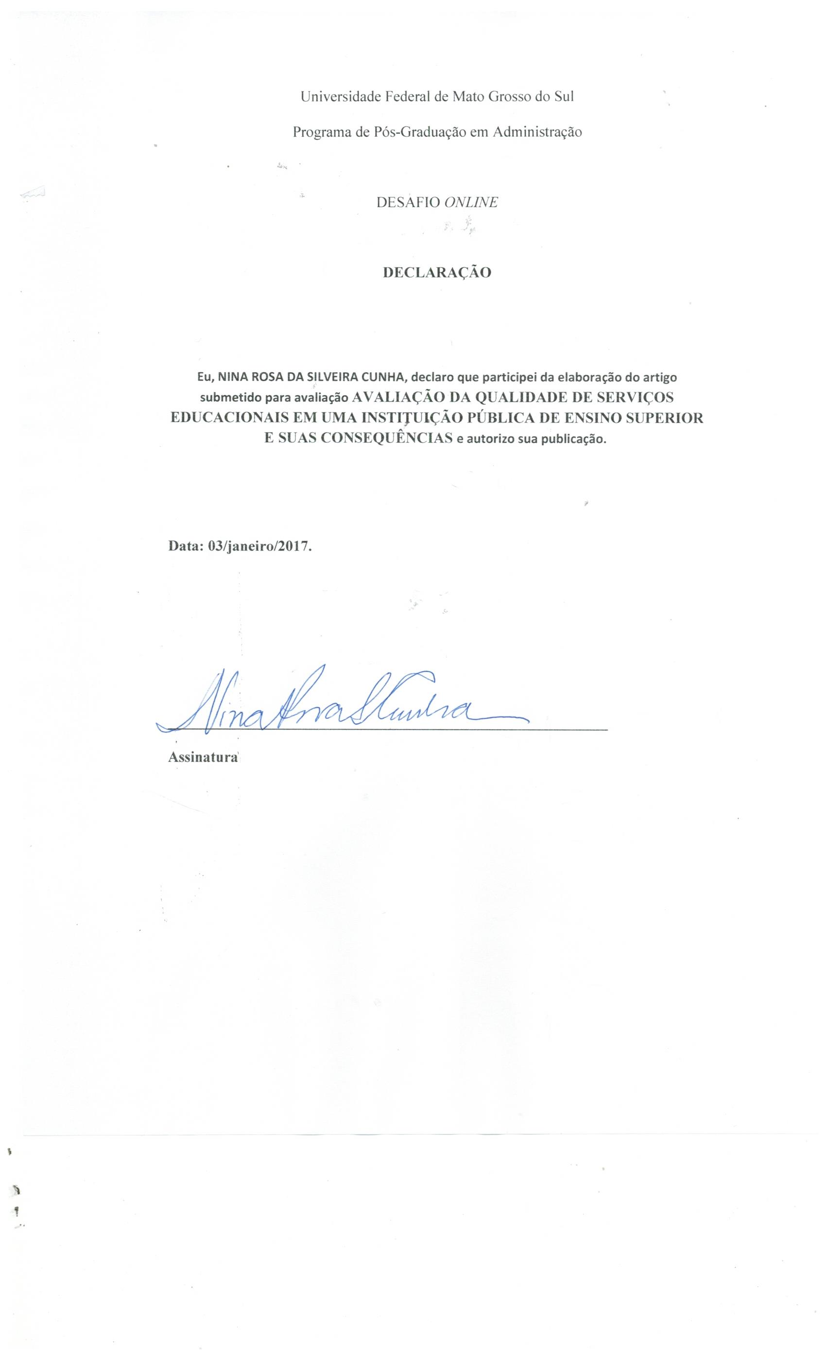 AVALIAÇÃO DA QUALIDADE DE SERVIÇOS EDUCACIONAIS EM UMA INSTITUIÇÃO PÚBLICA DE ENSINO SUPERIOR E SUAS CONSEQUÊNCIAS